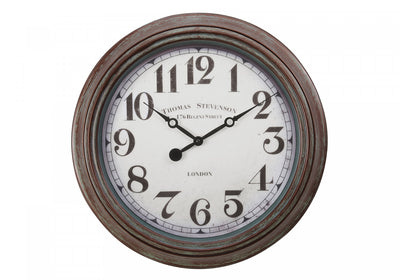 Upgrade your home decor with this charming, vintage style, 20" round wall clock that seamlessly blends transitional design with modern functionality. This decorative clock features a durable, plastic frame in a rubbed antique brown finish with a glass surface. The large, easy to read printed numerical markings with classic, black metal hands against a simple vintage print, makes it a functional and stylish addition to any space. With modern quartz movement ensuring accurate timekeeping, this clock is not only a beautiful decorative accent but also a reliable timepiece. The non-ticking mechanism provides a peaceful atmosphere without any distracting noise. No assembly is required, simply insert 1 aa battery (not included), hang it up and enjoy! For indoor use only, this stylish analog clock is backed by a 2-year limited warranty against manufacturer defects, so you can trust in its quality and craftsmanship.Product Dimensions: Depth: 2", Height: 20", Width: 20",