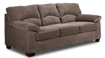 Elevate your living space with the Archie Sofa, designed for ultimate comfort and convenience. The reversible, zippered seat cushions allow for easy care and maintenance, ensuring your furniture stays fresh and inviting for years to come. Whether you’re enjoying a quiet afternoon or a long day of relaxation, the pillow-top arms provide the perfect support for lounging or taking a quick nap. Crafted with heavy-duty no-sag wire seat and back springs, made from tempered steel and enhanced with Teflon-coated clips, this sofa delivers both durability and comfort. The interior lining further adds to its longevity, offering a luxurious seating experience. Built to last, the frame is constructed from select kiln-dried hardwood and engineered wood. Glued, stapled, and reinforced with 6" corner blocks, it ensures maximum strength and stability, giving you peace of mind that your sofa is not only stylish but also built for years of dependable use. This sofa offers a perfect blend of relaxation, convenience, and lasting quality. The Archie Collection is proudly made in Canada, combining local craftsmanship with lasting comfort and quality.Product Dimensions: Depth: 38", Height: 36", Width: 83",