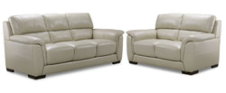 Avalon Leather Sofa and Loveseat Set - Oyster Grey Cream