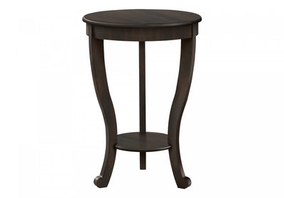 This elegant 26 inch high, 2 tier accent table is the perfect addition to a living room or bedroom. With a simple traditional design, this round side table offers enough surface space to place a small lamp and decorative object, with a bottom shelf as an additional storage option. Finished is a rich dark brown walnut veneer this space saving end table offers a practical solution whether you place it next to an armchair, a sofa, or as a chic nightstand in your bedroom. Durably designed to easily place it in any room, this versatile table includes full illustrated instructions for easy assembly. A 5 year limited warranty against manufacturer's defects is included for your satisfaction and trust.Product Dimensions: Diameter: 18", Height: 26.25",