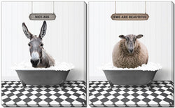This playful set of animals in bathtubs with humourous signs, brings a lighthearted, farmhouse charm. It’s perfect for adding whimsy to a bathroom or laundry room, especially in country-style decor.