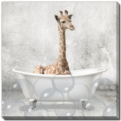 Baby giraffe in white clawfoot tub. Captivating piece of art that brings life and creativity to your home. Highlighted with clear and crisp design lines, the art signifies quality and style. Bring home this piece to add a little extra dash of colour and warmth to any spaceProduct Dimensions: Depth: 1", Height: 18", Width: 18",