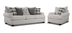 Sit back and relax in the inviting comfort of the Beverly Sofa and Chair and a Half Set. Designed for everyday living, this sofa and chair is built with a durable hardwood frame that ensures long-lasting strength, performance, and stability so you can simply enjoy your downtime on this couch. The loose back cushions allow you to reposition and customize your seating for maximum comfort. Effortlessly fluff them to refresh your space and maintain a relaxed, welcoming look. Elegant T-box seat cushions add a refined, tailored touch, while the extended corners gently wrap around the armrests, enhancing both comfort and visual sophistication. Classic 2.5-inch bun feet provide a heritage-inspired detail that adds stability and timeless charm to this living room sofa and chair. For an extra layer of style and comfort, the Beverly sofa and chair comes with a curated mix of designer pillows, each chosen to complement a wide variety of décor styles and aesthetics. The Beverly Sofa and Chair and a Half Set combine everyday comfort with elegant design, keeping you cozy while elevating your home.