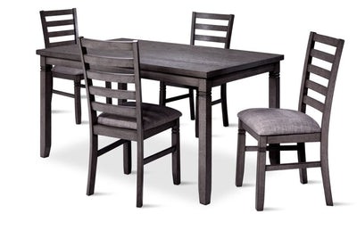 Coated in a contemporary dark grey finish, this collection is perfectly sized for limited space living, or for a compact breakfast corner. The dining set proves to be small in scale, yet big on transform the aesthetic of your dining style.Product Dimensions: Depth: 31", Height: 36", Width: 60",