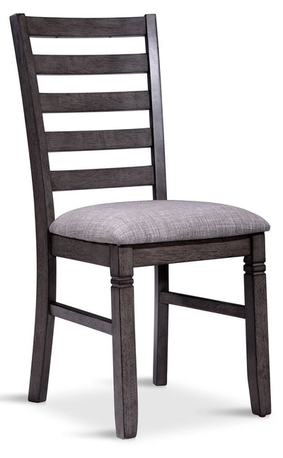 Coated in a contemporary dark grey finish, this piece is perfectly sized for limited space living, or for a compact breakfast corner. The dining set proves to be small in scale, yet big on transform the aesthetic of your dining style.Product Dimensions: Depth: 18.5", Height: 38", Width: 22",