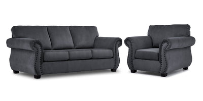 - Elegant rolled arms paired with refined nailhead detailing create a timeless, classic look—blending traditional charm with sophistication and adding a touch of vintage-inspired character to elevate your living space.