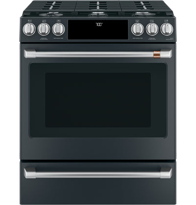 Café™ Matte Black 30" Slide-In Front Control Gas Oven with Convection Range and Air Fry (5.6 Cu.Ft) - CCGS700P3MD1