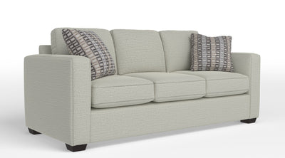 Experience comfort with the Caleb Sofa. This sofa has a contemporary look that will match any living room décor, which will make this couch a staple piece in your home. With the wide track arms adding on to the contemporary flair, you can rest your arms and head comfortably on the arms of this sofa. The seat and back cushions are reversible making it perfect for preserving the cushions so you can enjoy your sofa longer. The combination of kiln-dried hardwood, softwood, and engineered wood ensures a strong and durable frame, so your sofa will stand the test of time. The subtle look of the espresso wood legs ensure stability. With the high-performance fabric this sofa is easy to clean so you are able to relax without a worry while having a snack or drink. Two accent pillows are included to make your sitting experience extra cozy. Enjoy your time on the Caleb Sofa while watching a movie, reading a book or hanging out with friends and family.Product Dimensions: Depth: 37", Height: 35", Width: 82",