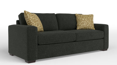 Experience comfort with the Celeste Sofa. This sofa has a contemporary look that will match any living room décor, which will make this couch a staple piece in your home. With the wide track arms adding on to the contemporary flair, you can rest your arms and head comfortably on the arms of this sofa. The seat and back cushions are reversible making it perfect for preserving the cushions so you can enjoy your sofa longer. The combination of kiln-dried hardwood, softwood, and engineered wood ensures a strong and durable frame, so your sofa will stand the test of time. The subtle look of the espresso wood legs ensure stability. With the high-performance fabric, this sofa is easy to clean, so you are able to relax without a worry while having a snack or drink. Two accent pillows are included to make your sitting experience extra cozy. Enjoy your time on the Celeste Sofa while watching a movie, reading a book or hanging out with friends and family.Product Dimensions: Depth: 37", Height: 35", Width: 84",