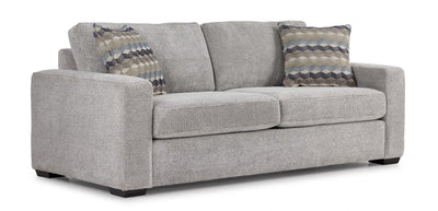 Experience comfort with the Celeste Sofa. This sofa has a contemporary look that will match any living room décor, which will make this couch a staple piece in your home. With the wide track arms adding on to the contemporary flair, you can rest your arms and head comfortably on the arms of this sofa. The seat and back cushions are reversible making it perfect for preserving the cushions so you can enjoy your sofa longer. The combination of kiln-dried hardwood, softwood, and engineered wood ensures a strong and durable frame, so your sofa will stand the test of time. The subtle look of the espresso wood legs ensure stability. With the high-performance fabric, this sofa is easy to clean, so you are able to relax without a worry while having a snack or drink. Two accent pillows are included to make your sitting experience extra cozy. Enjoy your time on the Celeste Sofa while watching a movie, reading a book or hanging out with friends and family.Product Dimensions: Depth: 37", Height: 35", Width: 84",