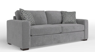Experience comfort with the Celeste Sofa. This sofa has a contemporary look that will match any living room décor, which will make this couch a staple piece in your home. With the wide track arms adding on to the contemporary flair, you can rest your arms and head comfortably on the arms of this sofa. The seat and back cushions are reversible making it perfect for preserving the cushions so you can enjoy your sofa longer. The combination of kiln-dried hardwood, softwood, and engineered wood ensures a strong and durable frame, so your sofa will stand the test of time. The subtle look of the espresso wood legs ensure stability. With the high-performance fabric, this sofa is easy to clean, so you are able to relax without a worry while having a snack or drink. Two accent pillows are included to make your sitting experience extra cozy. Enjoy your time on the Celeste Sofa while watching a movie, reading a book or hanging out with friends and family.Product Dimensions: Depth: 37", Height: 35", Width: 84",