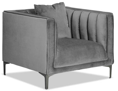 Retro Relaxation. Excitingly retro, the Celina is a statement piece with a lot to say. This piece isn't for those looking for an "average style," the Celina is for those looking for drama, colour and class. It’s soft touch velvet upholstery helps give it a unique feel while providing you the perfect place to sprawl comfortably. Plus, its design features strong lines and distinct detail stitching the Celina is a contemporary dream you won't want to wake up from.Product Dimensions: Depth: 34.5", Height: 29.5", Width: 37.5",