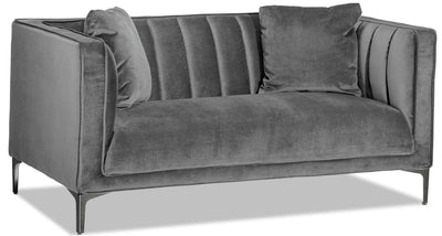 Retro Relaxation. Excitingly retro, the Celina is a statement piece with a lot to say. This piece isn't for those looking for an "average style," the Celina is for those looking for drama, colour and class. It’s soft touch velvet upholstery helps give it a unique feel while providing you the perfect place to sprawl comfortably. Plus, its design features strong lines and distinct detail stitching the Celina is a contemporary dream you won't want to wake up from.Product Dimensions: Depth: 34.5 ", Height: 29.5 ", Width: 59.5 ",