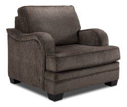Bring timeless elegance and everyday comfort to your home with the Charmaine Chair in Brown—a beautifully crafted piece that blends classic sophistication with modern versatility. Designed to complement both traditional and contemporary décor, it serves as the perfect finishing touch to your living space, adding warmth, balance, and effortless style. Wrapped in soft, textured brown upholstery, the Charmaine Chair combines plush cushioning with a tailored silhouette for a refined yet relaxed look. Its gently rolled Charles of London arms and deep, generous seating create an inviting space to unwind, whether enjoying a quiet moment alone or entertaining guests in comfort. The back pillow features fibre k-cloth inserts and a zippered cover, ensuring long-lasting support, easy maintenance, and a consistently fresh appearance. Proudly made in Canada, the Charmaine Chair exemplifies expert craftsmanship and premium materials—delivering lasting durability, superior comfort, and timeless charm. Elegant, comfortable, and beautifully designed, it’s a statement piece that feels right at home in any setting.