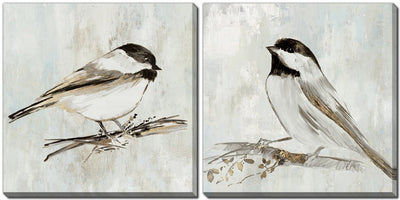 Chickadee Companions Wall Art - White/Grey - 16 X 16 - Set of Two