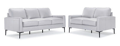 Chito Leather Sofa and Loveseat Set - Silver Grey