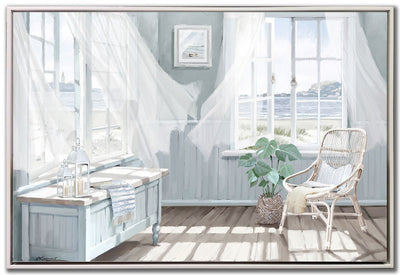 This image of a breezy coastal room captures the essence of relaxed seaside living. Ideal for coastal or cottage decor, it adds a refreshing, airy atmosphere.Product Dimensions: Depth: 1.5", Height: 31", Width: 46",