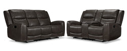 Plaza Leather Reclining Sofa and Loveseat Set - Grey