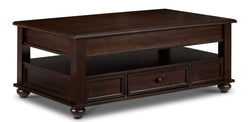 Bring elevated style and everyday functionality into your living space with the Corbel 48" Lift Top Coffee Table in Espresso. Crafted with elegant wood and veneer in a rich espresso finish, this piece adds warmth, depth, and timeless sophistication to both modern and traditional décor. Its clean lines and Casual Contemporary design make it an effortless fit in any room, offering a refined yet relaxed aesthetic. Perfect for busy, multifunctional spaces, the lift-top feature allows you to seamlessly transition from lounging to dining to working—all with a simple, smooth motion. Whether you’re enjoying a meal, tackling a project, or settling in with a good book, the adjustable height brings comfort and convenience to your daily routine. Smooth-rolling casters ensure effortless mobility, making it easy to reposition the table or shift your motion upholstery with minimal effort. A spacious bottom drawer and open shelf offer practical, stylish storage for remotes, books, blankets, and more, helping you keep your living room beautifully organized. Thoughtfully designed and endlessly versatile, the Corbel coffee table enhances your home with comfort, style, and everyday ease.