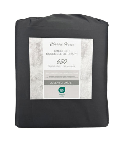 Cotton House 100% Combed Cotton King Sheet Set - 650 Thread Count Charcoal