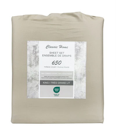 Cotton House 100% Combed Cotton Queen Sheet Set - 650 Thread Count Beige