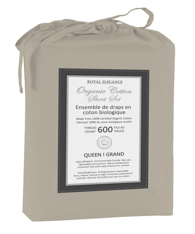 Cotton House 100% Organic Cotton Queen Sheet Set - 600 Thread Count Beige