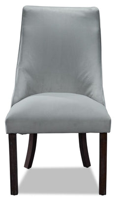 The Dandelion side chair adds a healthy dose of elegant style to your dining room or kitchen nook. This stunning side chair is upholstered in velvety-soft grey fabric and features curved sides and flared espresso wood-coloured legs for a chic complement to your classically styled home. This dining room furniture is a true dandy! Customer assembly required.