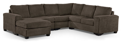 On Track. When you want to keep your living room on the path to contemporary style, the Danielle three-piece sectional with modular chaise is the perfect solution. Designed with wide track arms, dark wood-coloured wedge feet and ample seating, the Danielle features rich, classic java-hued microfibre upholstery which is easy to care for. Loose seat cushions, a U-shaped figure and a generous chaise round out the easy maintenance and comfort the Danielle provides. Chaise can be placed at either side of the sectional for maximum convenience. Made in Canada. Three-piece sectional includes left-facing left-facing loveseat with modular chaise, left-facing corner wedge and right-facing loveseat, as shown. Special order item. Please allow approximately 8-10 weeks for delivery.Product Dimensions: Depth: 36", Height: 33",