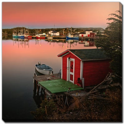 This warm, picturesque scene evokes peace, tradition, and coastal living. The mirror-like water and gentle colours are calming, while the iconic red shack adds a vibrant pop. It fits beautifully in waterfront homes, cottage-style rooms, or any cozy corner in need of a serene, nostalgic presence.Product Dimensions: Depth: 1.5", Height: 16", Width: 16",