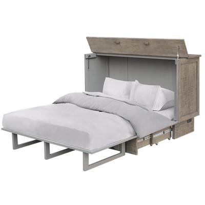 Bring modern versatility and timeless craftsmanship to your home with the Dorian Queen Sleep Chest in Warm Grey. Expertly built from solid pine and pine veneers, this multifunctional piece offers the perfect blend of durability, practicality, and comfort. The kiln-dried wood frame and premium hardware ensure lasting quality, while the high-resilience mattress delivers breathable, supportive rest for guests or everyday use. Designed for convenience, the Dorian features a built-in USB charging station, keeping your devices powered and within easy reach—no extra cords or clutter required. A spacious drawer provides additional storage for linens or personal items, helping you maintain a clean, organized look. With its secure locking mechanism and compatibility with standard queen-size sheets, setup is smooth and effortless. Supporting up to 500 pounds, this sleep chest ensures stability and peace of mind. Finished in a soft warm grey tone, the Dorian Sleep Chest complements any décor while transforming your space with smart, stylish functionality.Product Dimensions: Depth: 23", Height: 41.5", Width: 64",