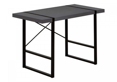 This stylish industrial-inspired computer desk could easily pass for an accent table. It features a spacious, thick-panel desktop finished in a modern grey laminate and sturdy metal legs in a contrasting black finish. The metallic components are put on full display with rectangular legs integrated into the desktop and an exposed support bar in an attractive x shape on the back of the desk. If you use a living room or bedroom as a home office and are looking for a streamlined alternative to traditional desks, this laptop or writing table gets the job done.Product Dimensions: Depth: 49", Height: 30", Length: 45", Width: 23.75",