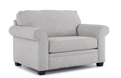 Experience coziness and comfort with the Duffield Chair and a half. This chair has a contemporary look that will match any living room décor, which will make this piece a staple in your home. The monochromatic piping detail on the armrest, back and seat cushions adds to the timeless elegance this chair brings to your home. The rolled arms add on to the contemporary flair of this chair. The loose seat cushions can be rotated for an even wear, so this chair will bring years of enjoyment. With a 2lb high density foam core, wrapped in high resiliency foam with dacron, the Duffield chair will keep you and your guests sitting comfortably. With the high-performance fabric this chair is easy to clean so you are able to relax without a worry while having a snack or drink. Rest comfortably and sink into relaxation so you can enjoy your time on the Duffield Chair and a half while watching a movie, reading a book or hanging out with friends and family.Product Dimensions: Depth: 37", Height: 38", Width: 54",