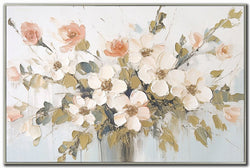 This artwork features a beautiful bouquet flowers, rendered in a soft and delicate style. The light, airy colours give it a fresh and romantic feel, ideal for brightening up a bedroom, dining room, or any space where a touch of floral elegance is desired.