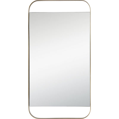 This mirror has a modern minimalist design. The contemporary appeal of the painted antique brass finished iron frame is beautifully balanced by the streamlined structure. Pair with ornate accessories to complement the design’s palette.Product Dimensions: Depth: 1.5", Height: 38", Width: 20",