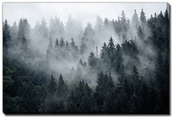 This image evokes tranquility and depth, making it a great fit for living rooms, studies, or bedrooms. The mist softens the scene, offering a calming effect while maintaining visual intrigue.