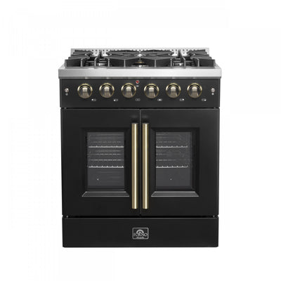 Forno Galiano 30" Black French Door Freestanding Gas Range (4.32 Cu. Ft.) - FFSGS6444-30BLK