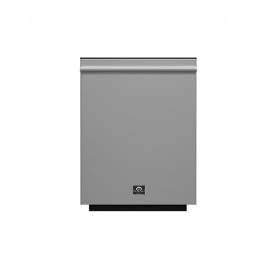 The Forno Pozzo 24" Dishwasher, operating at a low noise level of 49 decibels for peaceful cleaning. Its stainless-steel front and pro-style handle offer durability and style. The dishwasher features a spacious stainless-steel tub with 3 baskets, providing ample loading flexibility for large dish capacity and utensils, with 3 racks and an additional silverware basket. With six wash programs and electronic controls featuring a sleek LED display, it offers efficient and customizable cleaning options. Energy Star certified for eco-friendly operation.Product Dimensions: Depth: 26.75", Height: 33.75", Width: 24",