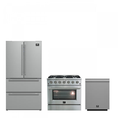 Forno Premium Stainless Steel Kitchen Package with 36" Gas Range, French Door Refrigerator and Dishwasher - FBDL-004-01CAUS