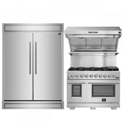 Forno Premium Stainless Steel Kitchen Package with 48" Gas Range, 2 28" Convertible Refrigerator/Freezer and 48" Range Hood - FBDL-019-07CAUS