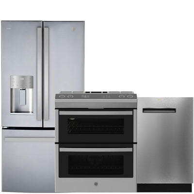 GE Profile Fingerprint Resistant Stainless Kitchen Package with French Door Refrigerator, Double Oven Range & Smart Dishwasher