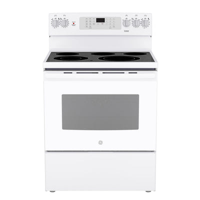 GE White Freestanding Electric Convection Range with No-Preheat Air Fry (5.0 Cu. Ft.) - JCB840DVWW