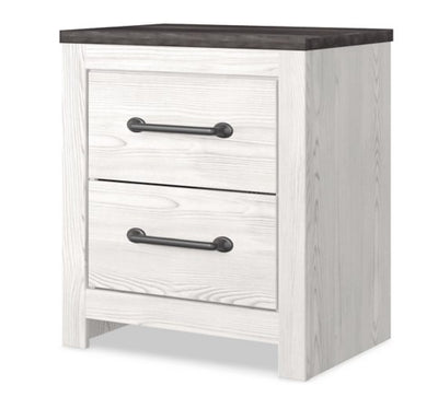 Cool, clean and casually modern. This nightstand's wispy whitewash and gray finish sets the tone for your calming sanctuary. Large linear pulls add dimension and authenticity. Two smooth-gliding drawers neatly accommodate your bedside needs.Product Dimensions: Depth: 15.75", Height: 24.75", Width: 21.75",
