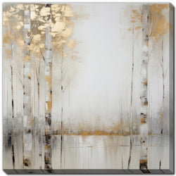 The abstract representation of birch trees, with its golden accents and neutral tones, brings a sense of elegance and tranquility to any room. It's perfect for creating a sophisticated and serene atmosphere, suitable for modern or contemporary interiors.