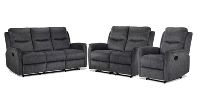 Grayson Reclining Sofa, Reclining Loveseat and Recliner Set - Charcoal