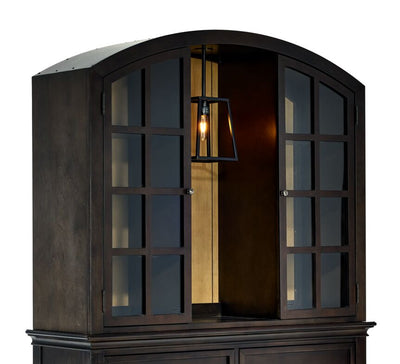 Looking for a versatile dining set that can adapt to your changing needs? Look no further than the Greyridge Farm dining set, which fuses the traditional simplicity and warmth of the farmhouse aesthetic with a modern sensibility. Store and display all your dining essentials with the hutch. Featuring a sleek black finish, this hutch offers ample storage space for your dishes, glasses, and other dining essentials. Showcase your fine china or other accessories through the hutch’s glass doors. The light fixture attached to the hutch provides a dim, atmospheric addition to your dining space. Whether that means you’re keeping things intimate or setting a relaxing ambience, you can control the vibe.Product Dimensions: Depth: 16.75", Height: 46.25", Width: 54",