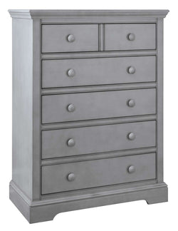 Gentle and pacifying, the Hanley youth and toddler bedroom collection is as dependable and safe as it is soothing. The warm cloud grey finish provides a restful and nurturing tone, and the smooth solid hardwood construction offers a peaceful ambience that’ll never overstimulate your young one. The Hanley chest has 5 spacious drawers that’ll give you plenty of storage space for your baby’s clothes, bedding, and diaper changing accessories. And as they grow older, there will be more than enough room to store their growing wardrobe! Crafted with dovetail joinery and bolstered by heavy duty drawer guides, the attentive craftsmanship results in a lasting chest that’ll smoothly glide open-and-closed even after years of use. The Hanley collection is constructed with time-tested solid hardwood, which requires minimal maintenance and offers incredible durability. Perfect for growing families, the Hanley crib bed set will be a sanctuary for your beloved little one for years to come!
