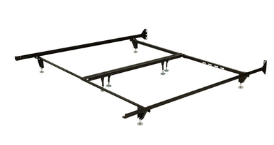 This heavy-duty bed frame easily adjusts to provide a sturdy foundation for any queen or king size mattress and boxspring. It features a centre bar for added stability, and the eight glide legs are recessed for safety and are ideal for wood, tile or other hard-surfaced floors.Product Dimensions: Height: 7.5", Length: 73.5",