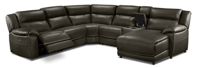 Holton Leather 6-Piece Sectional with Right-Facing Chaise - Charcoal Grey