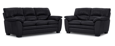 Kendrick Leather Sofa and Loveseat Set - Black