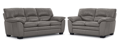 Kendrick Leather Sofa and Loveseat Set - Grey